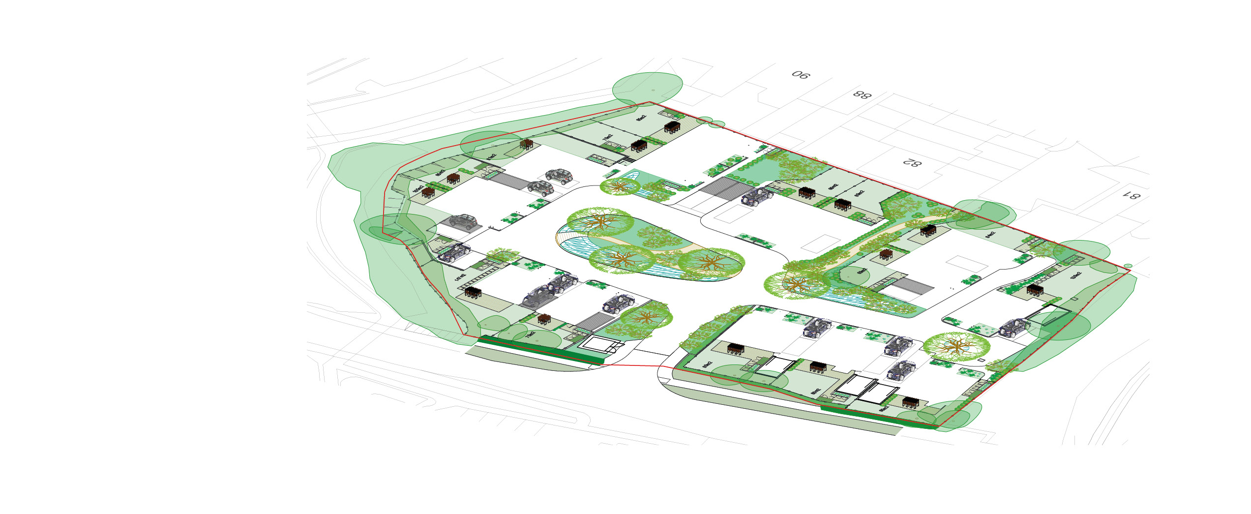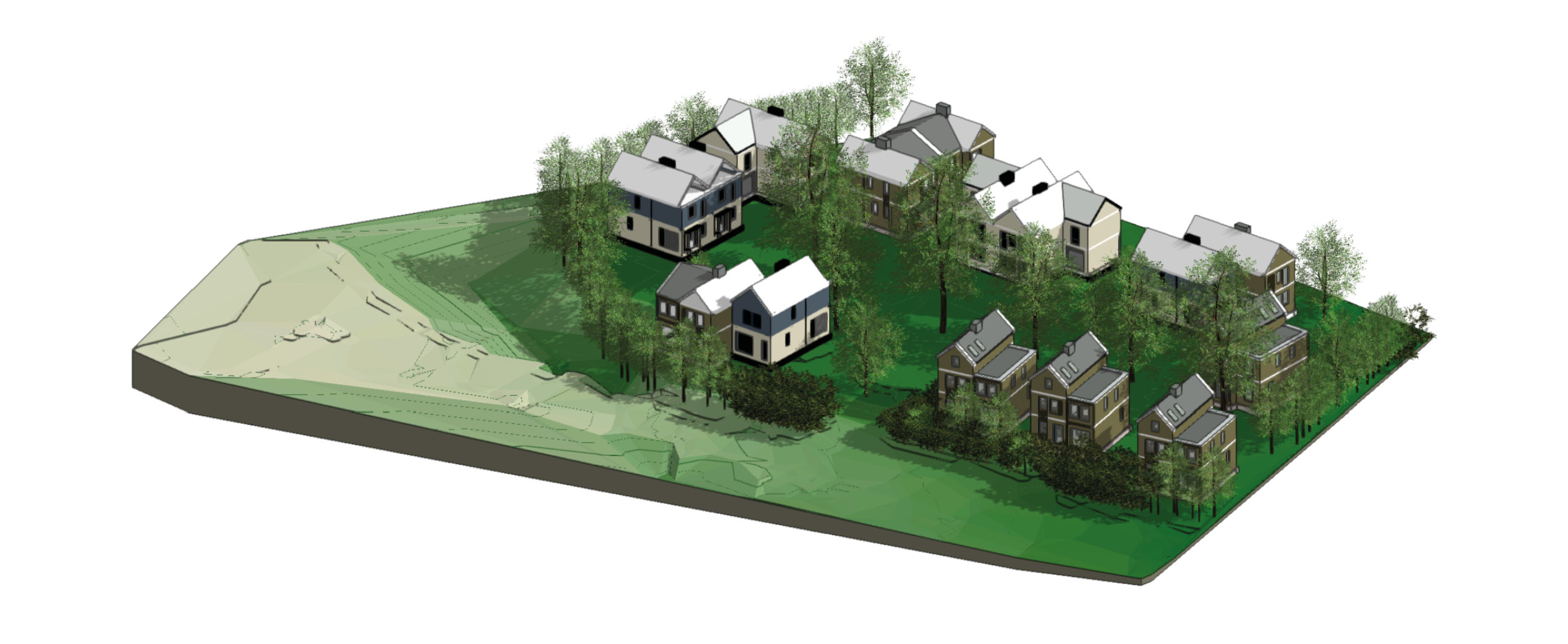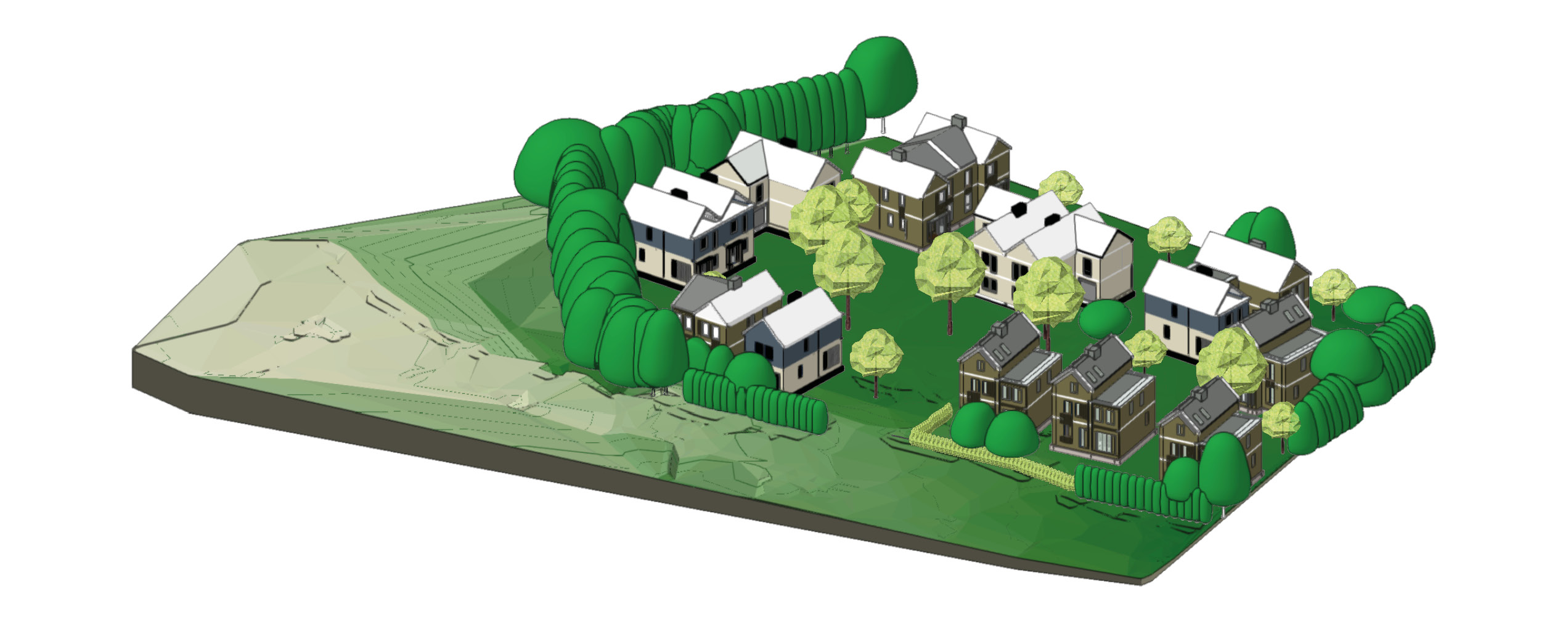 Once baseline information from the wider context has been compiled, we focus on site information, pulling together all the surveys relevant to the project; usually topography, arboricultural and drainage surveys to see what the landscape currently holds, then adding any architectural plans and working with the multi-disciplinary team to work out opportunities and constraints. Getting a sense of the land is crucial in what we do, particularly so that we can understand the fall