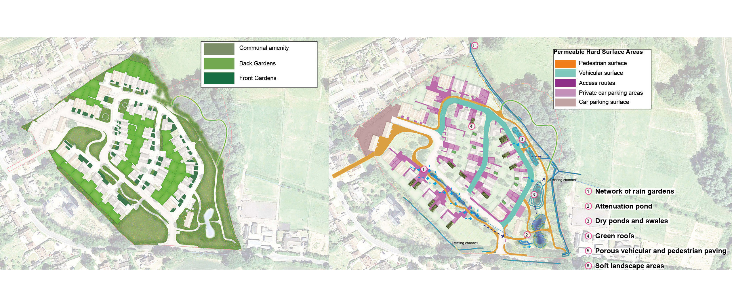 of the contours, the catchment areas around the site and the natural flow of water.