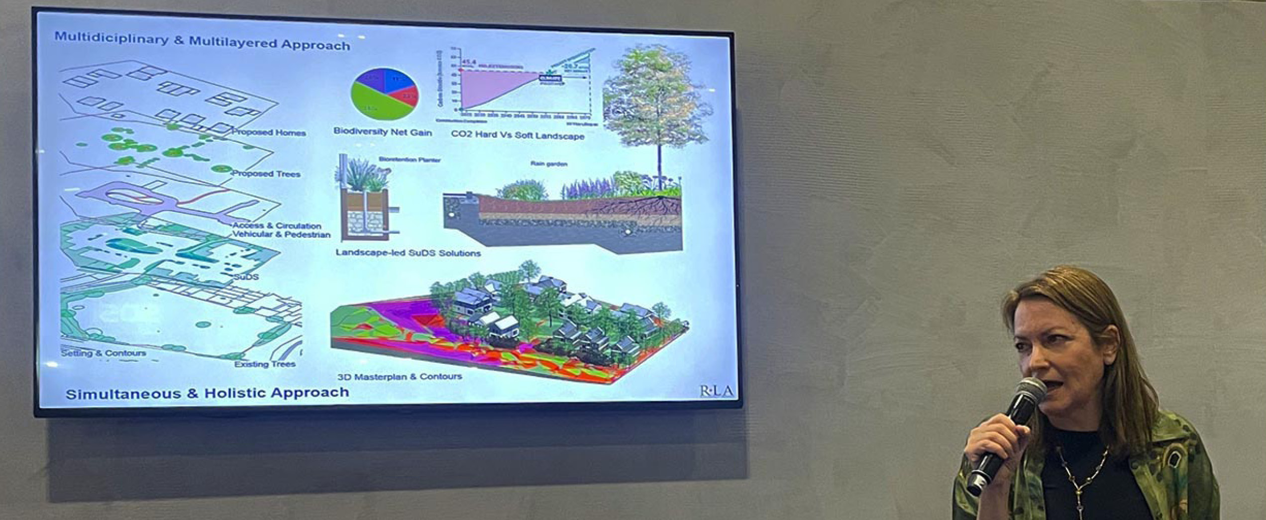 Dr Jerome spoke passionately about designing for the benefit of people and the natural world and called on the audience to turn up the volume when it comes to nature within designs if we want a resilient future. Gemma is the visionary behind the Building with Nature (BwN), the first Green Infrastructure accreditation in the UK.