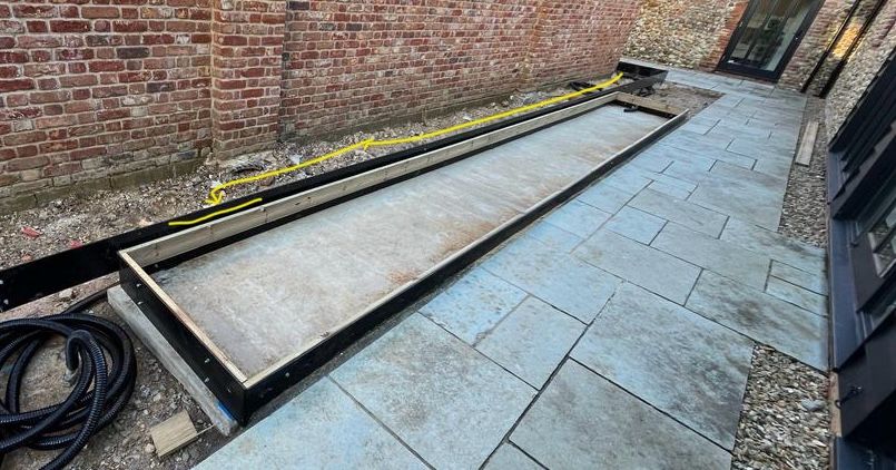 This private client approached R-LA to transform a narrow and long walled dead space into a garden for reflection that could be enjoyed inside and out. Hollow Lane is a modern country new build with minimalist interiors that benefits from lots of natural light.