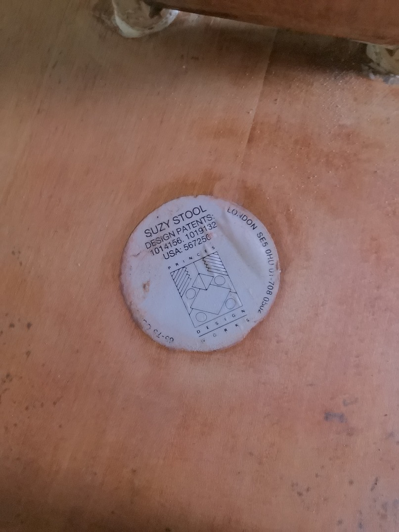 1986 Suzy stool Designed by Adrian Reed still is in fairly good condition. I now have given it a light clean but kept the pattern nation of age it has the paper label on the underside of the seat £175