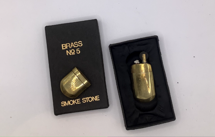This item was a giveaway to promote the Robert Stigwood Organisation and their product.The item was based on a first world war trench lighter and made in brass which was used by the troops. On the body of the lighter there is an outline engraving of a Japanese peace code which has been adopted by RSO as it’s symbol.